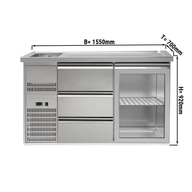 × Barový pult PREMIUM PLUS – 1550×700 mm – 1 sklenené dvierka a 3 zásuvky