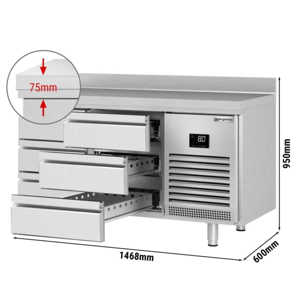 Obohaťte svoju kuchyňu o chladiaci stôl, ktorý kombinuje odolnosť, funkčnosť a efektivitu chladenia. Tento produkt je vyrobený z vysoko kvalitnej nehrdzavejúcej ocele AISI 304, čo zaručuje dlhú životnosť a ľahkú údržbu. Vďaka inteligentnému chladiacemu systému adaptuje svoje parametre automaticky, čím zabezpečuje optimálne chladenie pri každom použití.