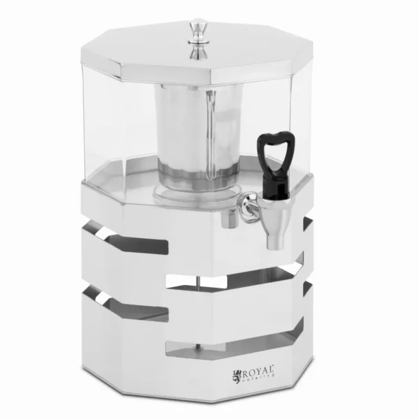 Predstavujeme vám štýlový chladiaci dávkovač nápojov od Royal Catering, ktorý je ideálny pre svadby, konferencie či rodinné stretnutia. So svojou kapacitou 4 litrov je dostatočne veľký na uspokojenie potrieb vašich hostí, pričom jeho priehľadná plastová nádoba elegantne zobrazuje vašu pripravenú ponuku. Vďaka nepriepustnej chladiacej vložke si môžete vychutnať osviežujúce studené nápoje bez ich nariedenia. Tento všestranný dávkovač je skvelý nie len na chladenie, ale aj na podávanie teplých nápojov, takže je pripravený pre každú situáciu. Jednoduché použitie zaisťuje kohútik, ktorý umožňuje čisté a bezproblémové plnenie pohárov.