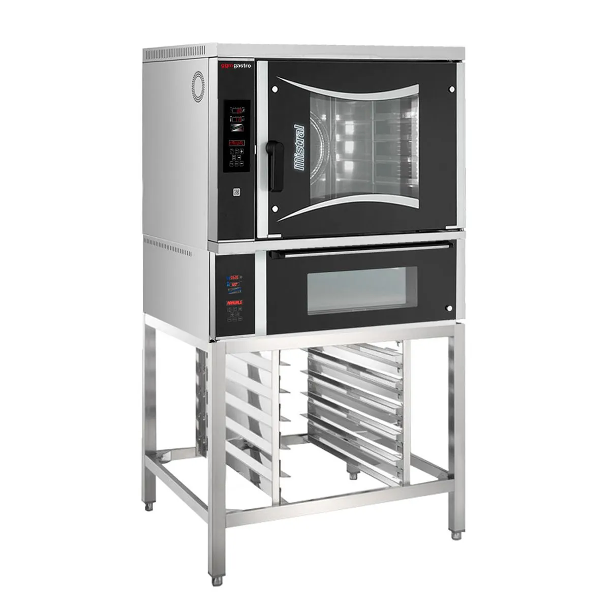 Digitálna pekárska plynová rúra – 6x EN 60×40, s pecou na pizzu, základný rám
