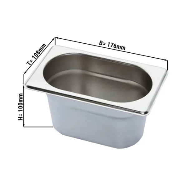 Predstavujeme vám vysoko kvalitnú GN nádobu 1/9 z nerezovej ocele, ideálnu pre jednoduchú manipuláciu a údržbu. Táto nádoba je perfektnou voľbou pre všetky profesionálne kuchyne, vďaka jej odolnej konštrukcii, ktorá zabezpečuje dlhú životnosť a zachovanie najvyšších hygienických štandardov. Perfektne sa hodí pre ukladanie a prípravu rôznych ingrediencií.