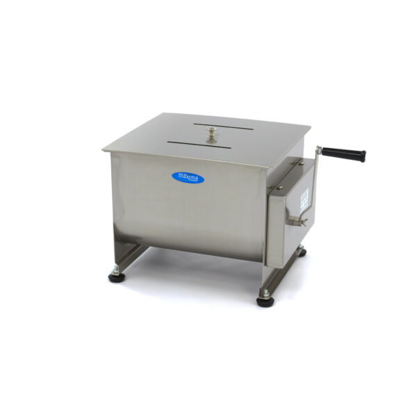 Maxima – 30L dvojitá hriadeľ 09368000 – Táto silná manuálna miešačka na mäso a koreniny je profesionálny a robustný mixér, ktorý disponuje dvojitou nápravou pre ešte efektívnejšie miešanie. Telo mixéra je vyrobené z nehrdzavejúcej ocele a obsahuje odolné a pohodlné otočné držadlá. Miešacie krídla a rukoväte sa dajú ľahko odstrániť a mixér sa môže otáčať v dvoch smeroch. Vybavený je guličkovými ložiskami s tesnením a stojí na 4 gumových nožičkách. Miešačka má kapacitu až 22,5 kg mäsa naraz a maximálny obsah 30 litrov. Je ideálna na miešanie mäsa a korenia a je veľmi jednoduchá na čistenie. Čistá hmotnosť mixéra je 15 kg a jeho rozmery sú Š455 x H385 x V355 mm.