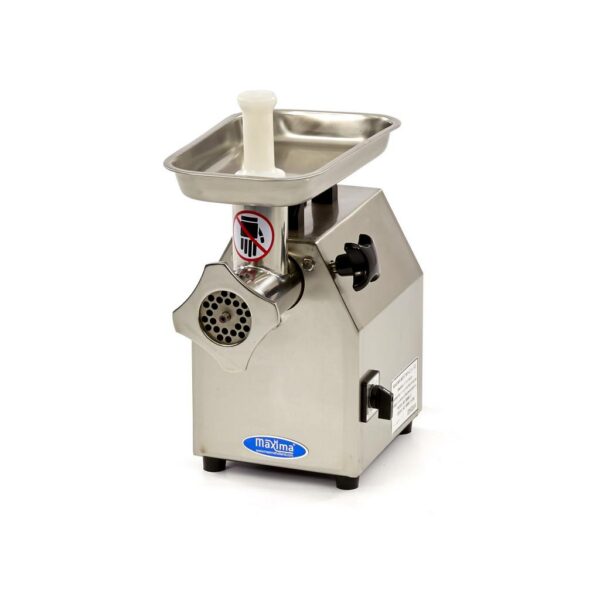Maxima MMM 32 – 1500W mlynček na mäso je profesionálny stroj s vysokým výkonom a množstvom výhod. Kryt a podnos sú vyrobené z nehrdzavejúcej ocele, rovnako ako závitový a skrutkový krúžok. Nože a taniere sú z kalenej ocele a brúsny diel je jednoducho odstrániteľný. Mlynček má 2 rýchlosti • dopredu a dozadu a dokáže vyprodukovať až 320 kg mäsa za hodinu. Rozmery vaničky sú V60 x Š350 x H500 mm a priemer otvoru podnosu je 80 mm. Ochranný spínač motora a štyri gumené nožičky zabezpečujú bezpečnosť a stabilitu. Čistenie je jednoduché a mlynček má čistú hmotnosť 55 kg. Rozmery sú V570 x Š340 x H650 mm a pracuje na 220V/50Hz/1fáza 1500W. Mlynček obsahuje aj 1 posunovač, 2 krížové nože, 1 náplň na klobásy s priemerom 20 mm a 2 brúsne dosky s hrúbkou 6 mm a 8 mm.