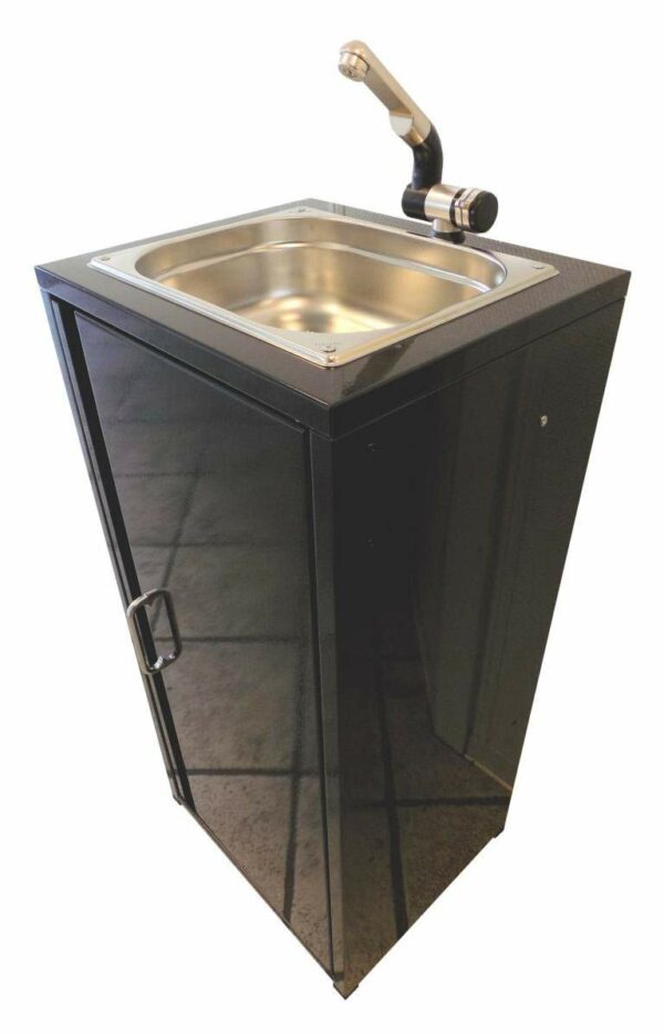 Mobilné umývadlo z nehrdzavejúcej ocele 10L je ideálne pre hygienicky citlivé priestory, kde nie je možné nainštalovať trvalé umývadlo. Obsahuje 10-litrovú nádobu na čistú vodu a odpadovou vodu. Tento produkt je vhodný pre mobilných poskytovateľov jedla a všade tam, kde nie je k dispozícii pripojenie na vodu. Skrinka má extra hladký povrch, ktorý sa ľahko čistí, a dvere je možné inštalovať s otvorom vpravo alebo vľavo. Drez z nehrdzavejúcej ocele má rozmery 265 mm x 325 mm x 100 mm a je vybavený odtokovou súpravou a kohútikom s plynulou reguláciou prietoku. Mobilné umývadlo má nádobu na čerstvú vodu a odpadovú vodu s kapacitou 10 litrov každá. Napájanie je možné od 230 voltov až po 12 voltov a ponorné čerpadlo je 12V. Umývadlo na umývanie rúk je možné použiť ihneď po naplnení nádobou vodou a nie je potrebné žiadne ďalšie pripojenie vody. Produkt má extra priehradku pre úložný priestor a rozmery 87 x 40 x 37 cm.