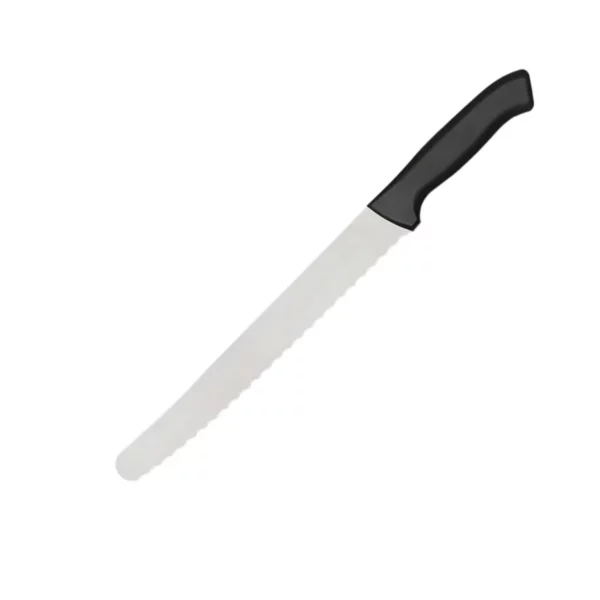 Objavte dokonalé krájanie pečiva s naším prémiovým nerezovým nožom na chlieb! Tento kvalitný nôž s dĺžkou 225 mm je navrhnutý tak, aby každé krájanie bolo jednoduché a presné. Vybavený je vysoce efektívnou vlnitou čepeľou, ktorá bez námahy prekrojí aj najchrumkavejšie pečivo. Čierna plastová rukoväť poskytuje pohodlné a bezpečné uchopenie, zatiaľ čo dôraz na hygienické normy zaručuje bezpečné používanie. Vyrobený v Nemecku z prémiovej ocele triedy DIN 1.4116, tento nôž je nepostrádateľným doplnkom pre každého milovníka pečiva.