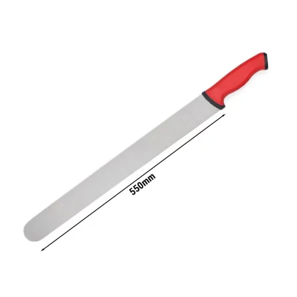 Tento vysoko kvalitný nôž na kebab je nevyhnutnosťou pre každého, kto sa venuje príprave kebabov. S červenou plastovou rukoväťou poskytuje pohodlné uchopenie a bezpečné ovládanie.