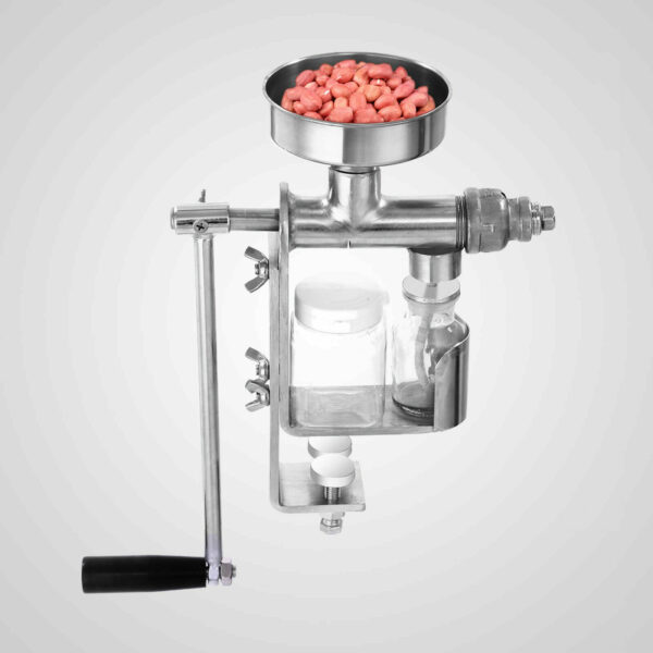 Ručný olejový lis vyrobený z potravinárskej nehrdzavejúcej ocele 304 zaručuje odolnosť, nehrdzavosť a zdravotnú nezávadnosť. Navyše, fľaše, ktoré sú s ním dodávané, môžete nahradiť fľaškami pre domácnosť, čo je veľkou výhodou. Ergonomická ručná kľuka je pohodlná a šetrí prácu, takže môžete mierne otáčať a extrahovať olej. Čistenie stroja je jednoduché a okrem stroja vám ponúkame aj kefu na čistenie. Tento olejový lis je vhodný pre väčšinu olejnatých plodín, ako sú arašidy, slnečnicové semená, čajové semienka, sezamové semienka, vlašské orechy, olivy, kokosové orechy, ľanové semienka atď. Je dôležité pred každým použitím všetky diely dôkladne očistiť a osušiť. Čerstvo vylisovaný olej by sa mal nechať vychladnúť a potom použiť do 2•3 dní. Na začiatku môže z nastavovacej skrutky vytiecť olej a extrakty, ale to je normálne a môžete použiť tanier alebo nádobu na zachytenie zvyškov.