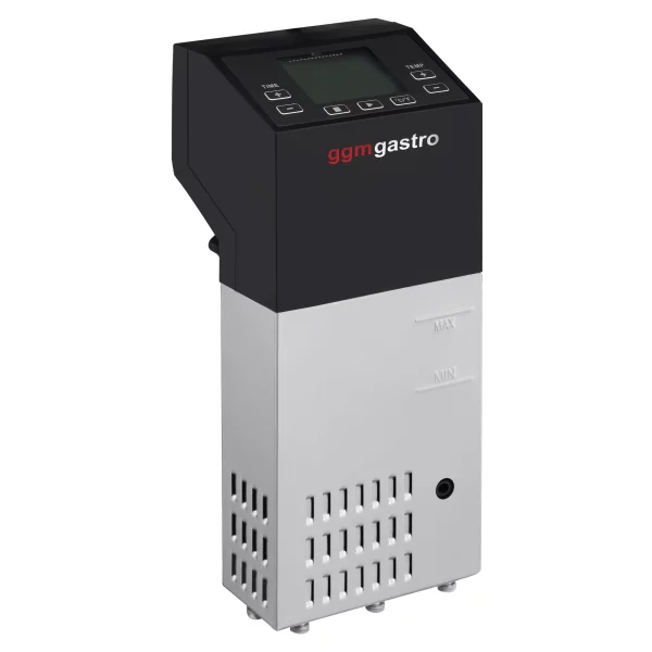 Sous vide varič – Model SVGFP1500 má funkciu pamäte nastavení a integrované obehové čerpadlo pre rovnomernú teplotu. Je vhodný pre vodné nádrže do maximálneho objemu 30 l a umožňuje nastavenie teploty od 5 °C do 99 °C. Okrem toho, má rýchly a efektívny rozvod tepla a ochranu proti prehriatiu. Zobrazí sa aj upozornenie, keď je hladina vody príliš nízka. Prehľadný LCD displej a mäkký dotykový panel umožňujú intuitívnu navigáciu v menu a funkciu časovača. Teplotná odchýlka je +/• 0,5°C a chuť a aróma sú zachované. Tento produkt má vysokú efektivitu práce a umožňuje úsporu energie. Jednoduchá manipulácia a mimoriadne robustný dizajn zabezpečujú jednoduché čistenie. Kvalita je zaručená nerezovým vykurovacím telom a puzdrom z nehrdzavejúcej ocele a plastu. Výkon je 1 500 wattov a elektrické pripojenie je 230V / 1N/PE / 50 Hz. Rozmery sú 140 mm x 110 mm x 332 mm. Tento výrobok je vyrobený v súlade s hygienickými a bezpečnostnými pokynmi a má označenie CE v súlade so smernicami. Materiál vyhovuje európskym potravinovým normám. Tipy na použitie zahŕňajú použitie vákuovo uzavretých potravín a destilovanej vody na prevádzku zariadenia.