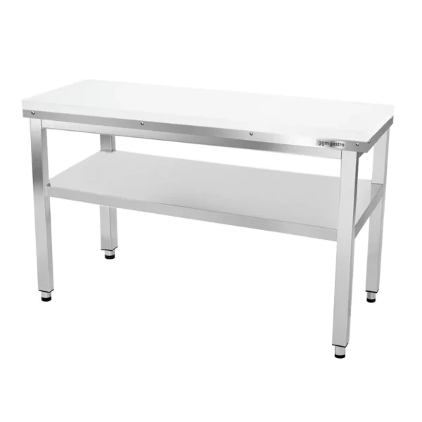 Mäsiarsky stôl 1,8 x 0,6 m je vyrobený s vysokou kvalitou a ponúka množstvo výhod. Skrutkovaná konštrukcia zabezpečuje pevnosť a stabilitu, zatiaľ čo ideálna pracovná výška zaručuje pohodlné používanie. S veľmi vysokou nosnosťou je tento produkt ideálny na spracovanie všetkých potravín, vrátane mäsa, zeleniny a rýb. Čistenie je jednoduché a rýchle. Telo je vyrobené z vysoko kvalitnej nerezovej ocele AISI 304, zatiaľ čo pracovná plocha je z polyetylénu. Pracovná plocha bez podstavca má hrúbku 40 mm a je odolná voči baktériám a umývateľná. Bez zhoršenia ostrosti noža. Základňa má spodný rám so základňou a výškovo nastaviteľné skrutkovacie nožičky. Vonkajšie rozmery sú 1800 x 600 x 870 • 910 mm. Rozsah doručenia zahŕňa 1 x základnú poličku.