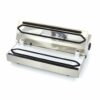 Maxima 09501000 je vákuový baliaci stroj s šírkou zváracieho pruhu 310 mm, ktorý disponuje plne automatickým cyklom balenia a luxusným dizajnom. Tento kompaktný a pohodlný vákuový stroj je vyrobený z nehrdzavejúcej ocele a má krásny povrch. Jeho priehľadné veko z PMMA umožňuje sledovať proces balenia. Stroj má zdvojené čerpadlo a maximálne vákuum 0,96 mbar. Pulzná vákuová funkcia je ideálna pre mäkké výrobky. Krátka doba tesnenia 2 sekundy a možnosť len tesnenia robia tento stroj veľmi efektívnym. Digitálny ovládací panel umožňuje jednoduché ovládanie. Rozmery tesniacej tyče sú 310 x 5 mm. Stroj stojí na štyroch gumených nohách a ľahko sa čistí. Celková hmotnosť stroja je 6,5 kg a jeho rozmery sú 390 x 275 x 130 mm. Stroj pracuje na napätí 230 V / 50 Hz / 1 Fáza 700 Watt.
