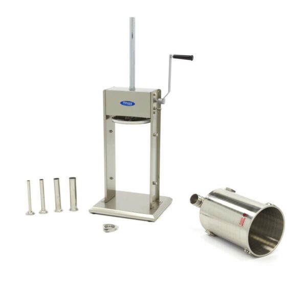 Maxima 09300464 – Vertikálna plnička klobás s kapacitou 12 l a 4 plniacimi rúrkami je vyrobená z nehrdzavejúcej ocele v súlade s medzinárodnými hygienickými normami. Tento model má mnoho výhod, ako napríklad: